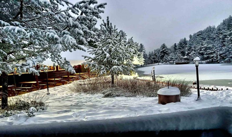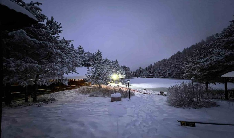 Gümüşhane’nin Torul ilçesine bağlı Zigana Köyü sınırlarında yer alan, etrafını sarmalayan çam ağaçlarının içerisinde yer alan doğa harikası Limni Gölü Tabiat Parkı, kar yağışının ardından büyüleyici manzaraya bezendi.