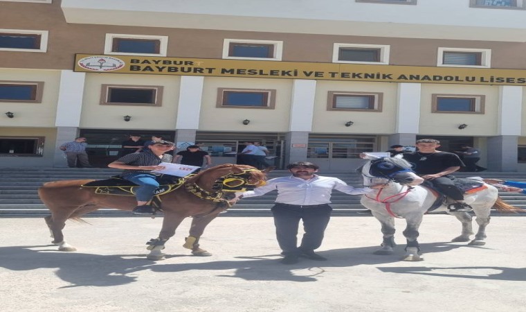 Bayburt Mesleki ve Teknik Anadolu Lisesi öğrencilerinden Emirhan Arık ve Enes Tokay isimli öğrenciler karne almak için okula atlarla gittiler. "Ehliyetim olmadığı için ben de atla geldim" diyerek olaya şakayla yaklaşan Arık, karnesini at üzerinde aldı.