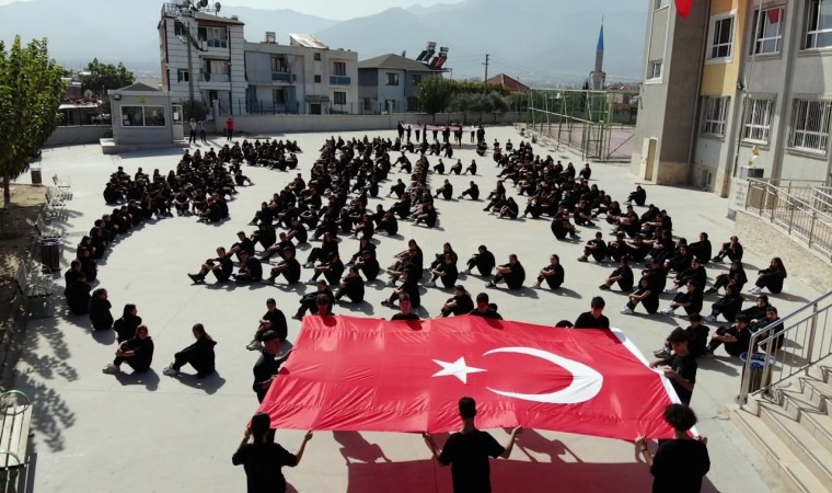 DENİZLİ(İHA) – Cumhuriyetin 100. yılı dolayısıyla okullarda çeşitli etkinlikler düzenlenmeye devam ederken Mehmet Akif Ersoy Anadolu Lisesi öğrencileri, ‘Cumhuriyetin 100. Yılı ve Atatürk İmzalı’, Biz Atatürk Gençleriyiz marşı koreografi oluşturdular. O anlar dron ile kaydedildi.
