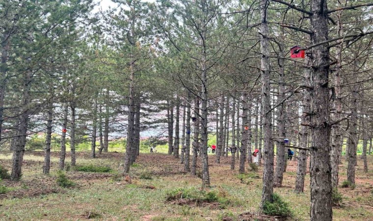 Eskişehir Orman Bölge Müdürlüğü ile iş birliği yapan lise öğrencileri, geri dönüşüm malzemelerinden imal ettikleri kuş yıvalarını doğaya bıraktı.