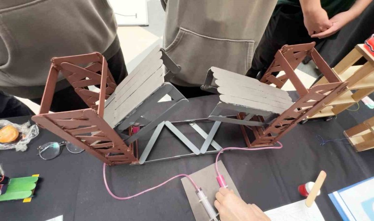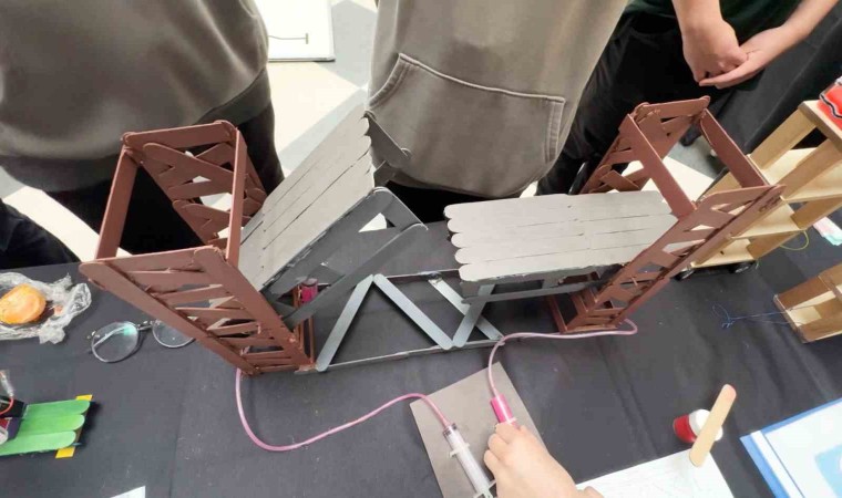 10. sınıf öğrencileri Melek Duygu ile Mehmet Furkan Köç ise hazırladıkları açılır kapanır köprü ile sergi salonundaki yerini aldı. Proje hakkında bilgi veren Melek Duygu, "Biz bu projeyi tasarlarken Türkiye’de ve diğer ülkelere yaşanan sorunu baz aldık. Deniz ulaşımı sırasında büyük yükler taşıyan gemiler, sabit köprülerden dolayı boğazlardan geçemiyor ve yollarını uzatmak zorunda kalıyor. Bu da hem zaman hem de maliyet açısından insanlara yük oluyor. ’Bu sorunu düzeltmek için neler yapabiliriz?’ diye düşündük ve iki çözüm yolu bulduk. Birincisi bizim yaptığımız hidrolik köprü, ikincisi ise asansörlü sistem" diye konuştu.
