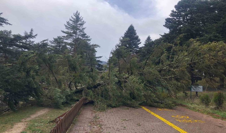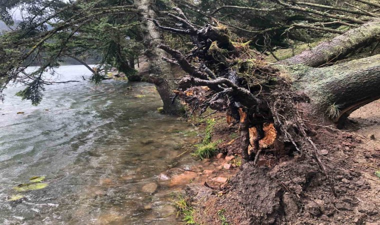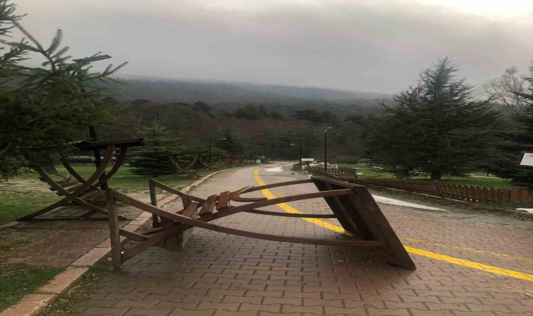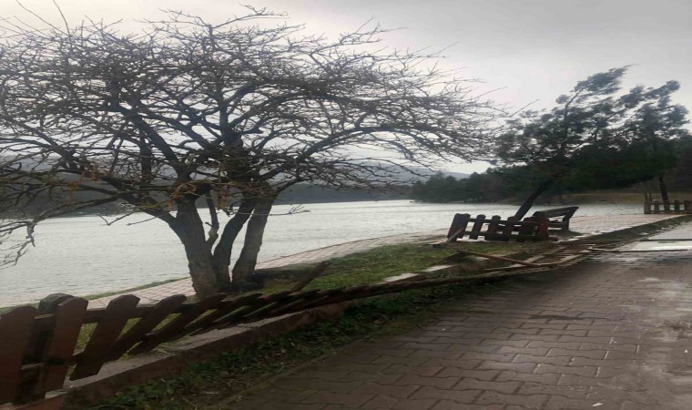Bolu’nun doğa harikası Gölcük Tabiat Parkı’nda etkili olan lodos nedeniyle, banklar, ağaçlar ve çitler yıkıldı.