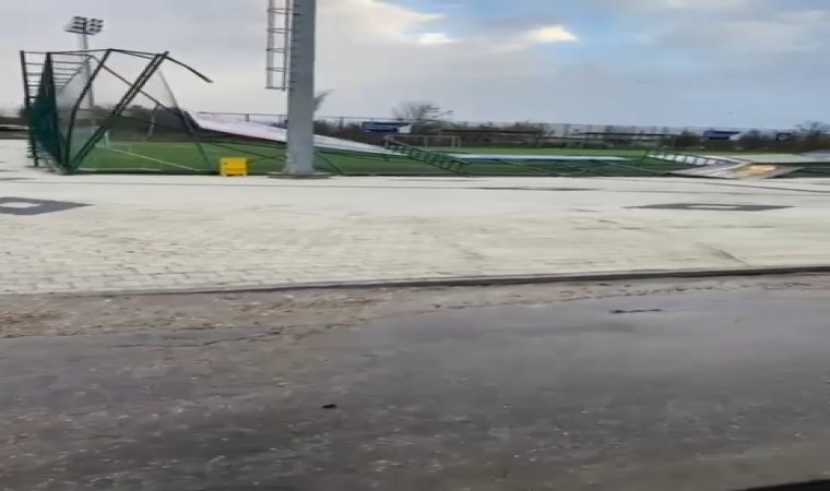 Bursa’nın İnegöl ilçesi kırsal Cerrah Mahallesi’nde yapımı tamamlanarak açılan futbol tesisi, şiddetli lodos nedeniyle hasar gördü.