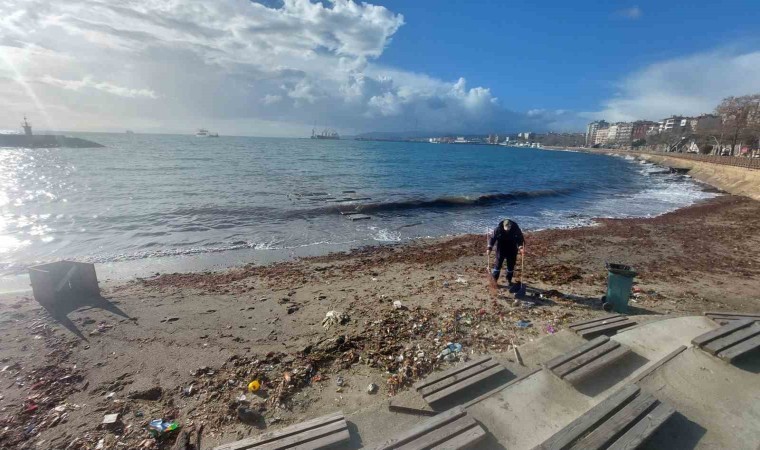 Süleymanpaşa Belediyesi temizlik personelince kızıl yosunları biriktiği alanda temizlik çalışması başlatıldı.