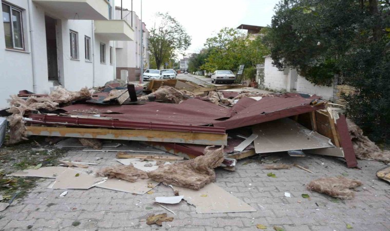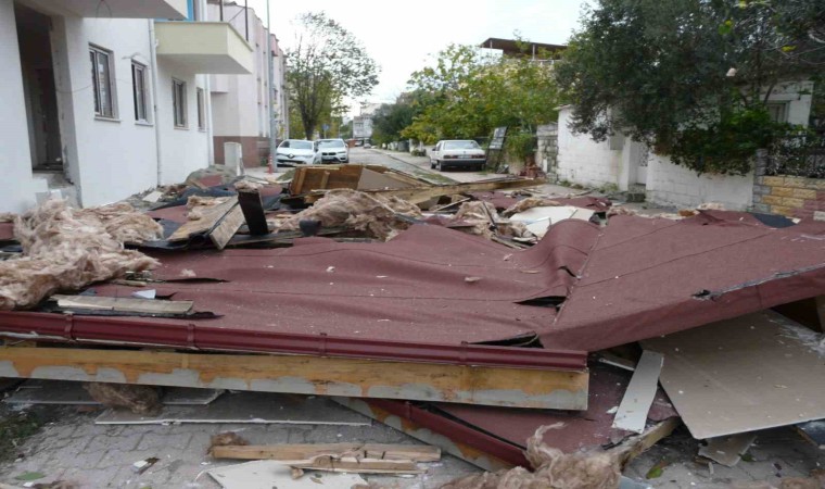 Sinop’un Gerze ilçesinde etkili olan kuvvetli rüzgar nedeniyle evlerin çatıları uçtu, ağaçlar devrildi, çöp konteynırları ve tabelalar yerlerinden savruldu.