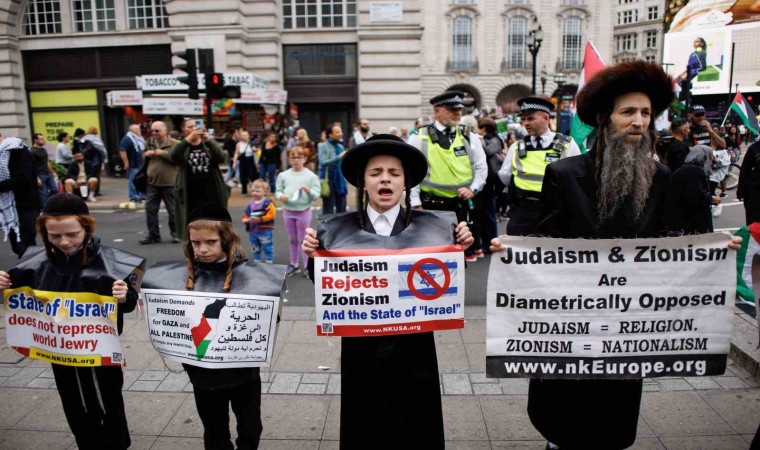Yürüyüşe destek veren Ortodoks Yahudi cemaati üyeleri ise, “Filistin, egemenliğine geri dönsün”, “Gazze’de siyonist katliamını ve zulmünü durdurun”, “Siyonizme ve İsrail Devleti’ne her zaman karşıyız”, “İsrail Devleti, Yahudi halkı temsil etmiyor” yazılı pankartlar taşıdı.