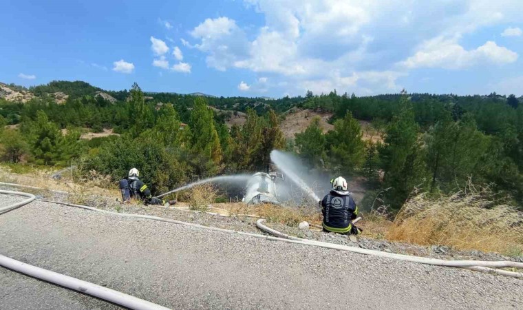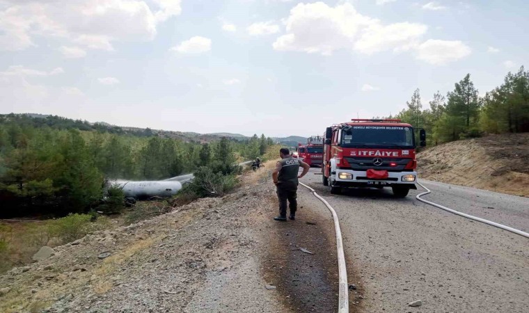 Denizli’nin Serinhisar ilçesinde seyir halindeki LPG yüklü tanker sürücüsü direksiyon hakimiyetini kaybetmesi sonucu şarampole devrildi.