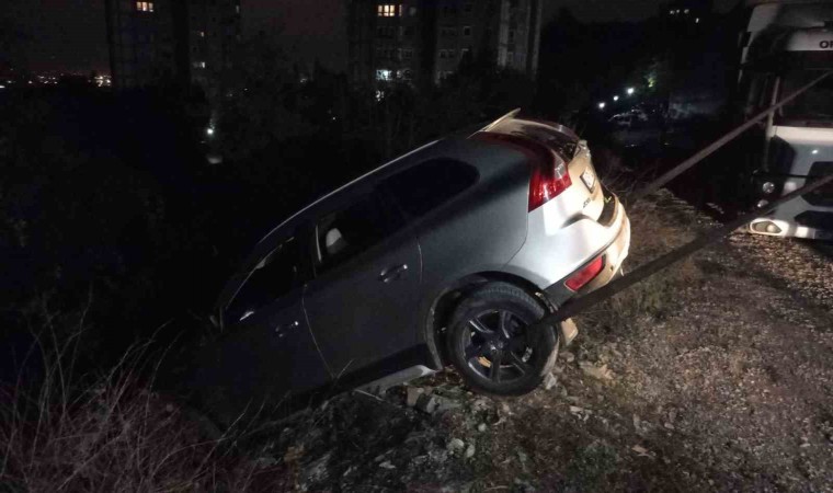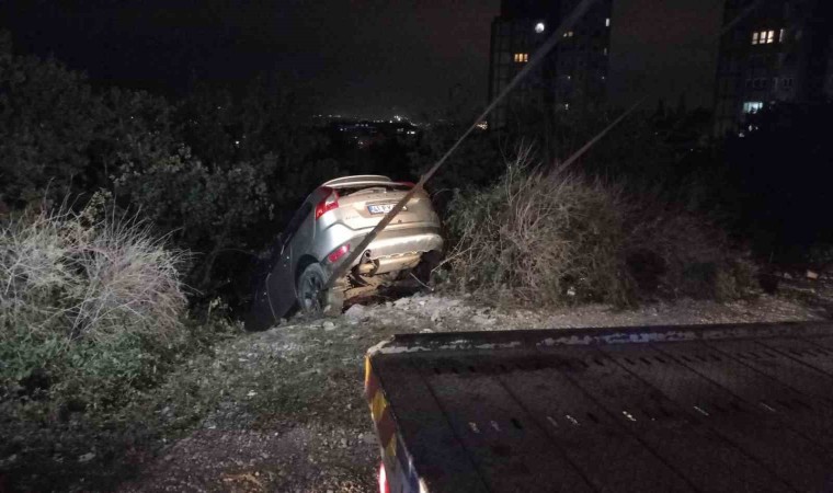 Yeşillik alana düşen cip, vinç vasıtasıyla bulunduğu yerden çıkartıldı. Polis, olayla ilgili inceleme başlattı.