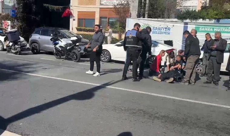 Sarıyer’de park alanından çıkarken dönüş yapan lüks cipe çarpan motosikletli zabıta, savrularak yere çakıldı. Kazanın şokuyla gözyaşlarına boğulan kadın sürücü, yaralı zabıtanın başından bir an olsun ayrılmazken, vatandaşlar için yaralı zabıta memuru için seferber oldu.