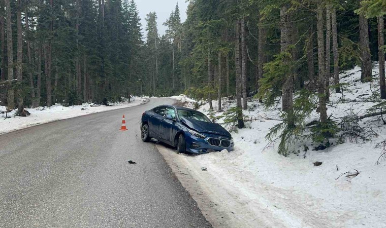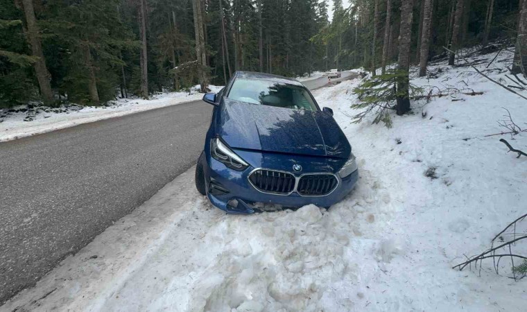 Bolu’da Kartalkaya Kayak Merkezi yolunda kontrolden çıkan lüks otomobil, yol kenarına savruldu. Karlı alana saplanan otomobilde maddi hasar meydana gelirken, kazada yaralanan olmadı.