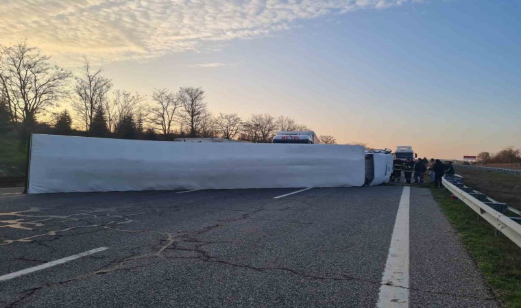 Kaza, TEM Otoyolu Hamitabat köyü yakınlarında meydana geldi. Edinilen bilgilere göre, Ş.D. idaresindeki 34 HR 2295 plakalı tır, sürücüsünün direksiyon hakimiyetinin kaybedilmesi üzerine devrildi.