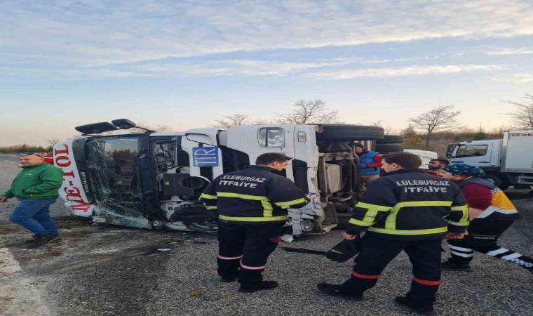 Kırklareli’nin Lüleburgaz ilçesinde bir tırın yola devrilmesi sonucu sürücü yaralandı.