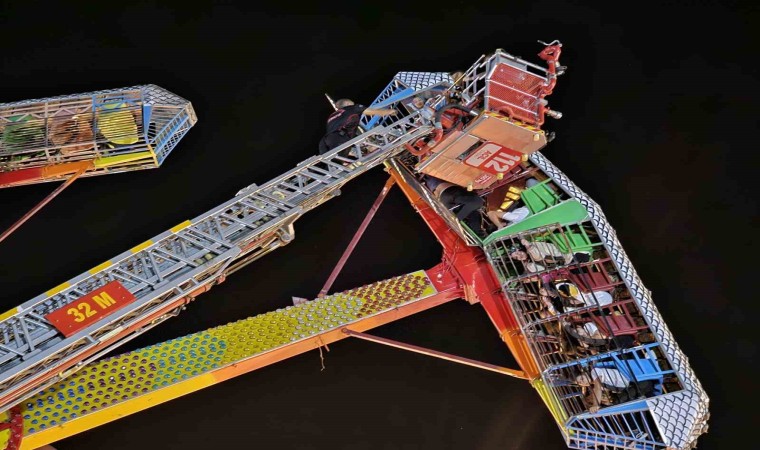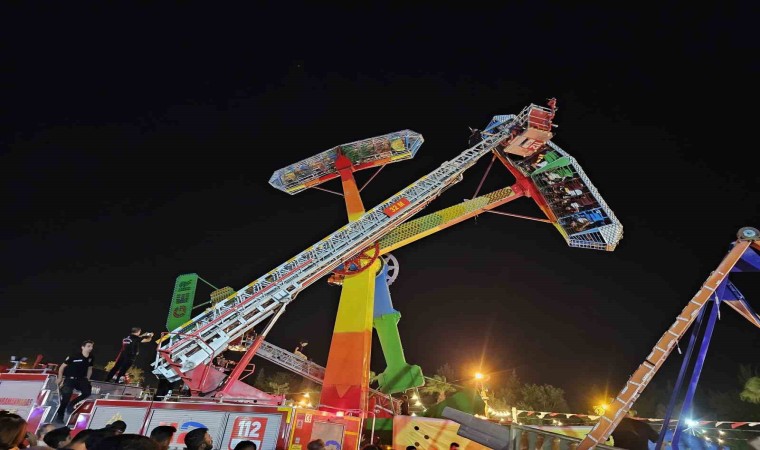 Kahramanmaraş’ta lunaparktaki oyun alanında eğlenen vatandaşlar, ’çekiç’ isimli oyun grubunun bozulması ile yaklaşık 1 saat havada asılı kaldı. Mahsur kalanların imdadına itfaiye yetişti.