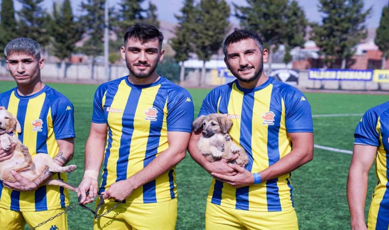 Süper Amatör Lig takımlarından Sakin Şehir Seferihisarsporlu futbolcular, sezonun ilk maçına barınakta sahiplendirilmeyi bekleyen köpeklerle birlikte çıktı.