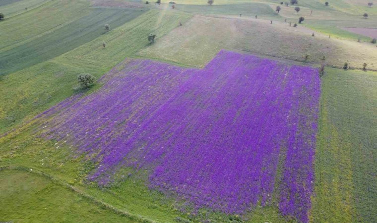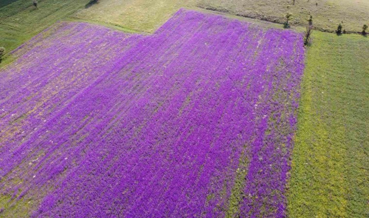 BOLU (İHA) – Bolu’da ekim ayında, hayvanların beslenmesi için ekilen macar fiği, tarlayı adeta tabloya dönüştürdü. Yeşil tarlaların arasında açan mor çiçekler, eşsiz manzara ortaya çıkardı.