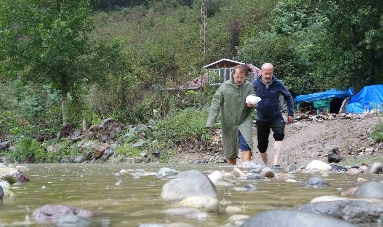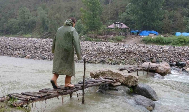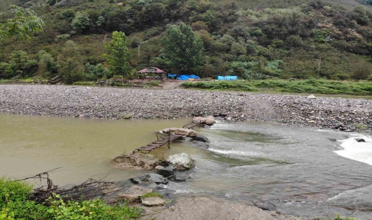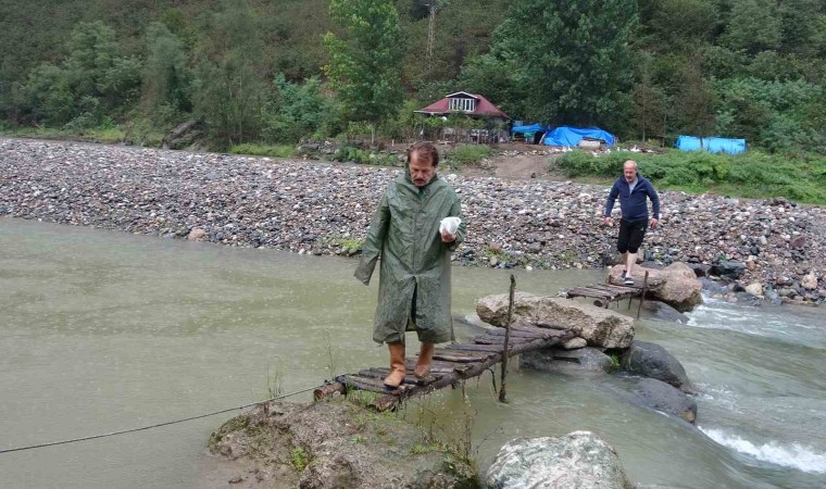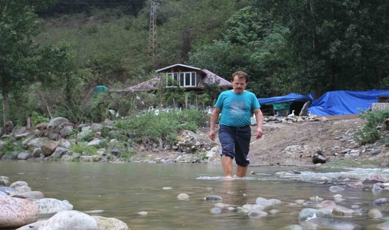 Ordu’nun Altınordu ilçesinde yaşayan Abdullah Türkmen, yolu olmayan ve 10 yıl önce yaptırdığı evine ulaşmak için ırmak içerisinde yerleştirdiği taş ve tahta iskeleleri kullanıyor. Türkmen, macera parkurunu aratmayan yolda su debisinin yükseldiği zaman evine giriş-çıkış yapamadığını, burada kaldığını belirtiyor.