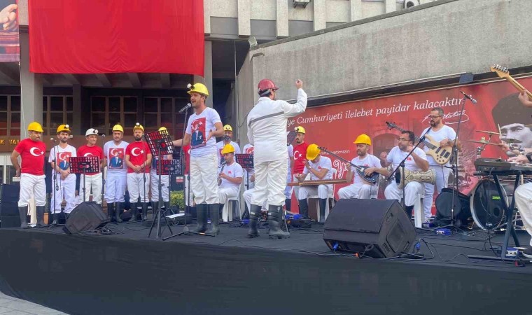 Zonguldak’ta Cumhuriyet’in 100. yılında sahne alan madenci korusunun konseriyle vatandaşlar cumhuriyet coşkusunu yaşadı.