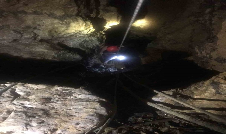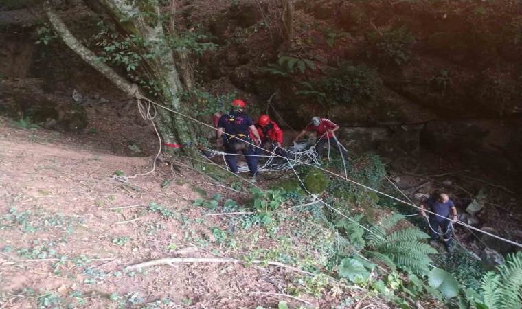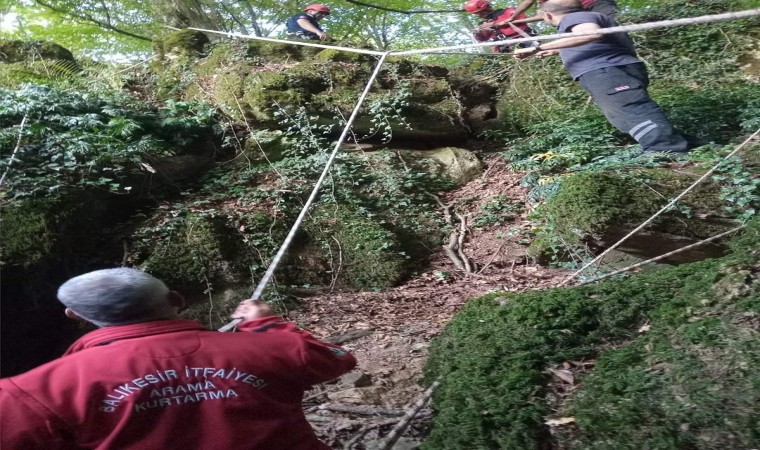 Balıkesir’in Manyas ilçesinde otlanırken mağaraya düşen dana itfaiye ekipleri tarafından kurtarıldı.