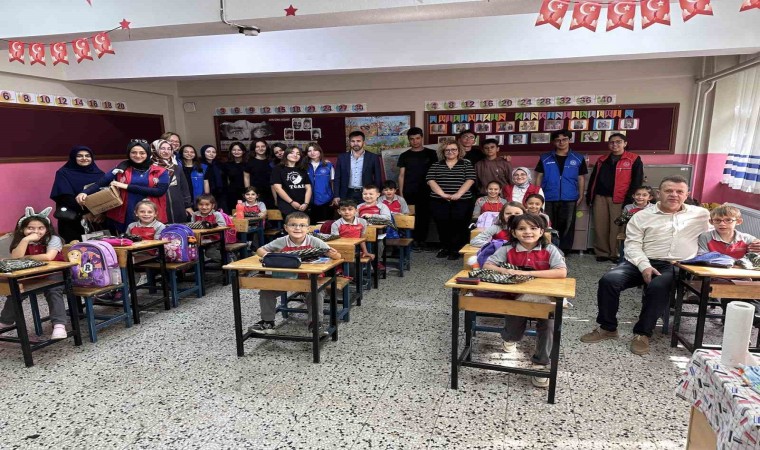 Düzce’de Bahçeşehir Gençlik Merkezi’nin başlattığı Mahallemin Okul Projesi çerçevesinde toplanan kırtasiye malzemeleri Darıyeri Hasanbey İlkokulu’nda dağıtıldı.