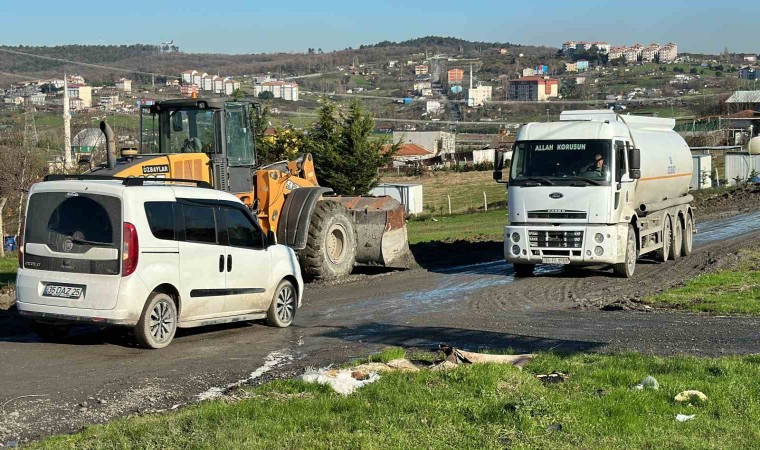 Arnavutköy’de villaların yapıldığı şantiye alanına giden kamyonların yasak olmasına rağmen kullandığı sokaklarda çökme ve çamurlaşma oluşunca, mahalle sakinleri bir kamyonun geçişi esnasında sokağı araçlarıyla trafiğe kapattı. Gerginlik devam ederken devreye Jandarma ve şantiye sorumluları girdi.