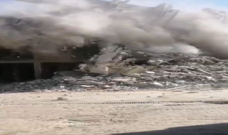 Kahramanmaraş merkezli depremlerde ağır hasar alan Hatay’da mahkeme süreci sona eren binaların yıkım ve enkaz kaldırma çalışmaları aralıksız sürüyor. Kırıkhan ilçesi Cumhuriyet Mahallesi’nde bulunan 7 katlı apartman da iş makinesiyle kontrollü olarak yıkıldı. Binanın yana doğru yıkılma anıysa kameralara yansıdı. 7 katlı binanın yıkımı esnasında herhangi bir olumsuzluk yaşanmadı.