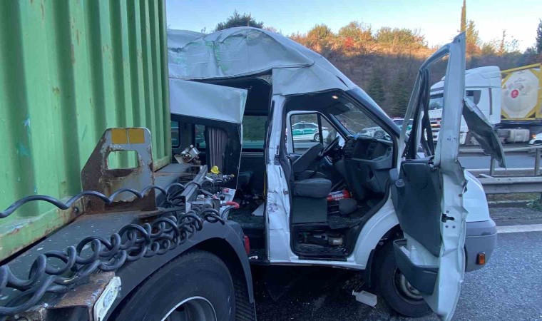 TEM Otoyolu’nun Kocaeli geçişinde tır, tanker ve mahkumları taşıyan cezaevi aracı kazaya karıştı. Cezaevi aracının tır ile bariyer arasında sıkıştığı kazada 1 mahkum ve 4 jandarma personeli yaralandı.