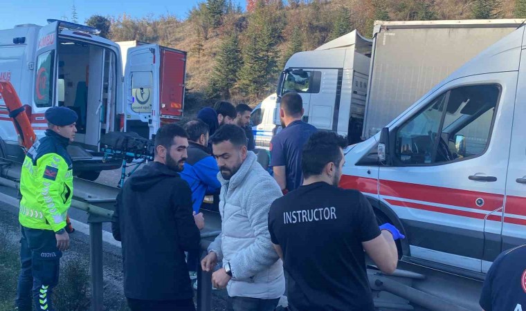 Kaza, TEM Otoyolu’nun Ankara istikameti Bekirdere Viyadüğü üzerinde meydana geldi. İddiaya göre, sürücüsü henüz öğrenilemeyen 01 ANK 900 plakalı tanker arızalanarak yol kenarında durdu. Bu sırada arkadan gelen 06 CTV 956 plakalı tır emniyet şeridinde duran tankere çarptı. Kazaya, 19 SP 328 plakalı mahkum taşıyan cezaevi aracı da karıştı. Tır ile bariyer arasında sıkışan cezaevi aracındaki 1 mahkum ve 4 jandarma personeli yaralandı. Tankerde taşınan ve beton sertleştirmek için kullanıldığı öğrenilen sıvı ise yola döküldü. 112 Acil Çağrı Merkezi’ne yapılan ihbar üzerine adrese itfaiye, sağlık ve jandarma ekipleri sevk edildi. Yaralılar, sağlık ekiplerinin ilk müdahalelerinin ardından hastaneye kaldırıldı.