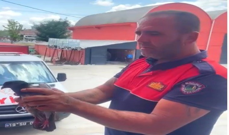 Çorum’un Sungurlu ilçesinde bir apartmanın balkon camının arasında mahsur kalan güvercini itfaiye ekipleri kurtardı.