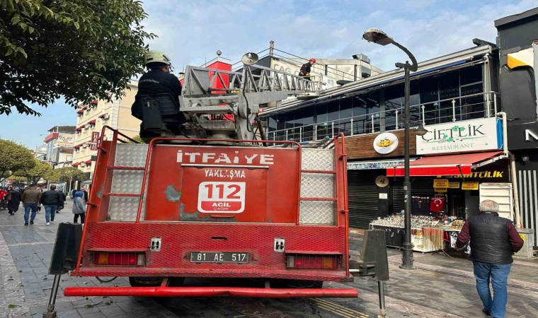 Düzce Belediyesi İtfaiye ekipleri bir iş yerinin çatısında mahsur kalan 3 kediyi kurtardı.