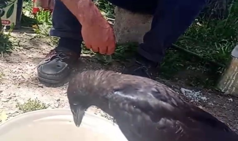 Bursa’da ikamet eden ve davet üzerine hemşerilerinin düğünlerine gelen kaval ustası Nurettin Kahveci isimli yerel sanatçı, hemşerilerinin mahallesi olan Özalp ilçesine bağlı Yukarı Dönerdere Mahallesi’ni takipçileri ile paylaşmak üzere sosyal medya hesabından canlı yayın yaptığı sırada kavak ağacında mahsur kalan kargayı fark etti. Duruma duyarsız kalmayan Kahveci, ayağına dolanan misina ipiyle mahsur kalan kargayı kurtarmak için yaklaşık 30 metre yükseklikteki kavak ağacına tırmandı. Karganın mahsur kaldığı dala ulaşamayan Kahveci, dalı keserek kargayı mahsur kaldığı yerden kurtardı. Karga kurtarıldıktan sonra aksayarak yürümesi ve uçmamasından dolayı Kahveci ve yanındakiler kovaya su koyup karganın önüne getirdiler. Suyu gören karganın kana kana su içmesi Kahveci ve yanındakileri duygulandırdı. Uzun süre su içen karga, kendine geldikten sonra bahçede yürümeye başladı. Kurtarma anı ve sonrasını canlı yayını kesmeden paylaşan Kahveci, takipçilerinden olumlu tepki aldı.