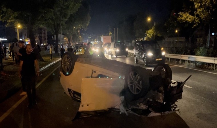 Bursa’da anayolda makas atan otomobil, aynı istikamette ilerleyen ticari taksiye çarpıp takla attı. Kazada 1’i ağır 3 kişi yaralandı.