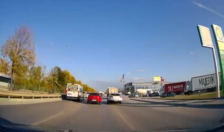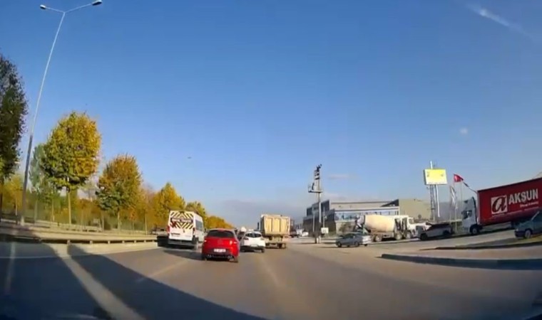 Olay, Bursa’nın Nilüfer ilçesi Görükle Kavşağı mevkisi İzmir Yolu üzerinde meyana geldi. Otomobil sürücüsü makas atarak yol değiştirdiği sırada kazayı kıl payı atlattı. Sürücü, yaşanan bu tehlikeli durumu fark etmeyerek yoluna devam ederken, o anlar araç kamerasıyla kayda alındı. Polis, makas atan sürücüyü yakalamak için çalışma başlattı.