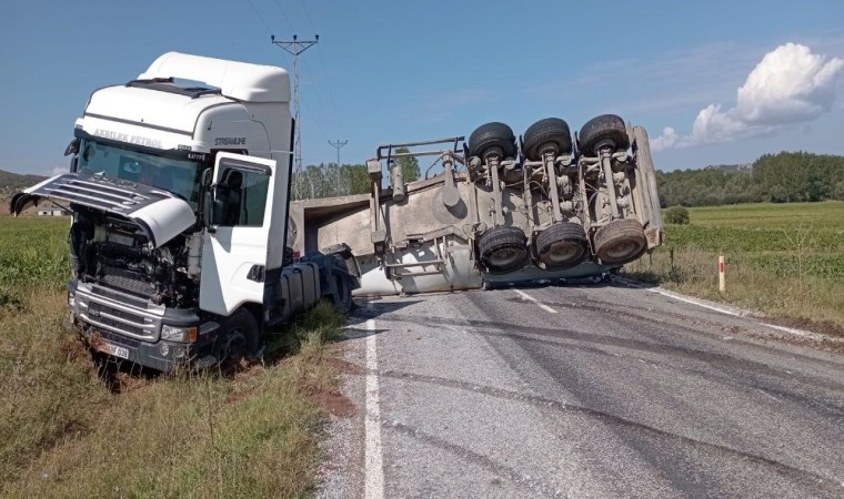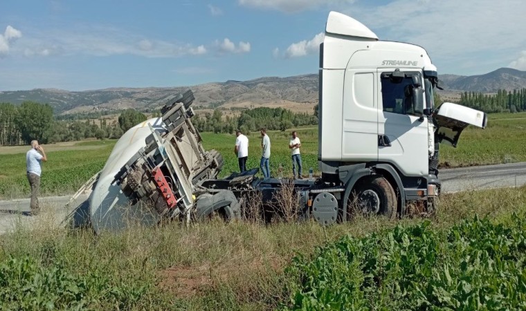 Tokat’ın Yeşilyurt ilçesinde sürücüsünün direksiyon hakimiyetini kaybettiği tırın dorsesi devrildi. Karayolu bir süreliğine araç trafiğine kapandı.