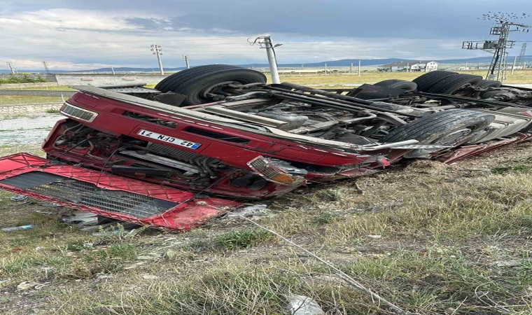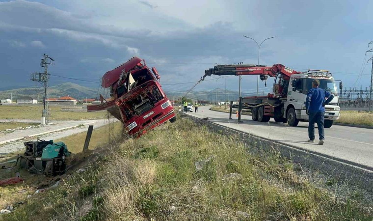 Afyonkarahisar’da kontrolden çıkarak devrilen makine yüklü kamyonun sürücüsü yaralandı.