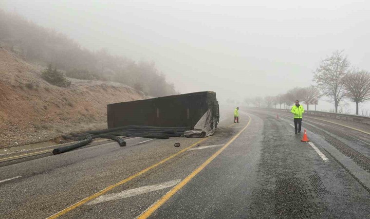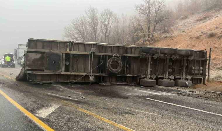 Malatya-Adıyaman karayolu Suçatı mevkiinde demir yüklü çekici devrildi. Kaza nedeniyle Adıyaman’dan Malatya’ya gidiş yönü geçici olara trafiğe kapatılırken ulaşım çift yönlü olarak karşı şeritten sağlanıyor.