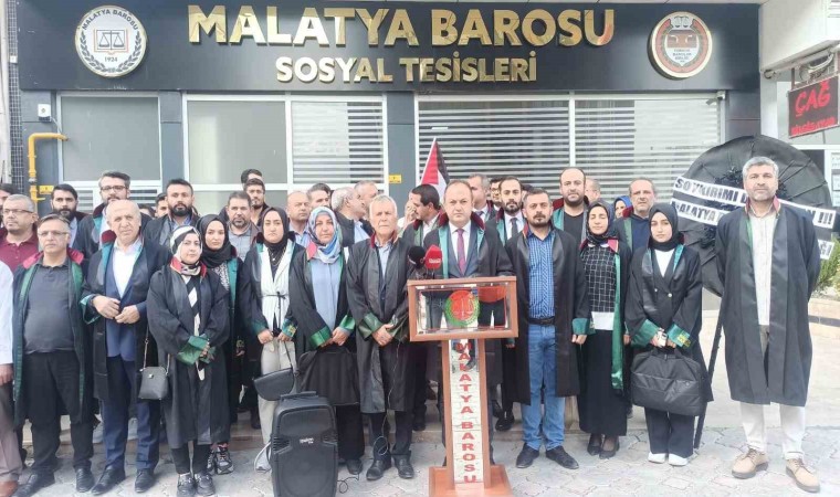 Malatya Baro Başkanı Av. Onur Demez ve baro yönetimi tarafından gerçekleştirilen basın açıklamasına birçok avukat destek verdi. Burada konuşan Başkan Onur Demez, “Filistin ve 21. yüzyıl Nazi’si İsrail arasında 7 Ekim tarihinden itibaren yaşanan çatışmalar her an artarak devam etmektedir. İsrail tüm dünyanın gözü önünde insanlığı yok ederek, soykırım yaparak savaş suçu işlemektedir. Dünyanın neresinde olursa olsun başta çocuklar ve kadınlar olmak üzere sivillere yönelik gerçekleştirilen tüm saldırıları; saldırılar kimden gelirse gelsin, kime yönelik olursa olsun en sert şekilde kınıyoruz. Sivilleri doğrudan hedef alan, hastaneleri, okulları vuran bir zihniyetin uluslararası hukuk önünde ve vicdanlarda hesap vermesi kaçınılmazdır” dedi.