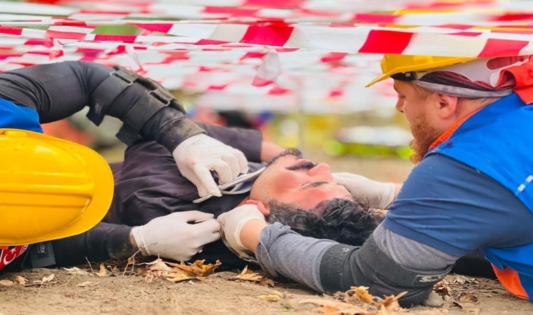 Arama ve kurtarma personelleri göçük altında sıkışmış hastayı doğru ve güvenilir şekilde çıkarmak için canla başla çalışırken diğer yandan farklı senaryoda ise araç içinde sıkışan hastayı çıkartarak gerçeğini aratmayan bir müdahale ile nefes kesti.