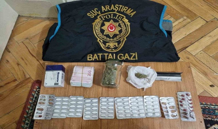 Şahsın yapılan üst aramasında, 226.86 gram esrar maddesi, 10 flaşör halinde toplamda 84 adet NEURONTİN 800 mg sentetik ecza hap suçtan elde edildiği değerlendirilen 25 bin TL para ele geçirildi.