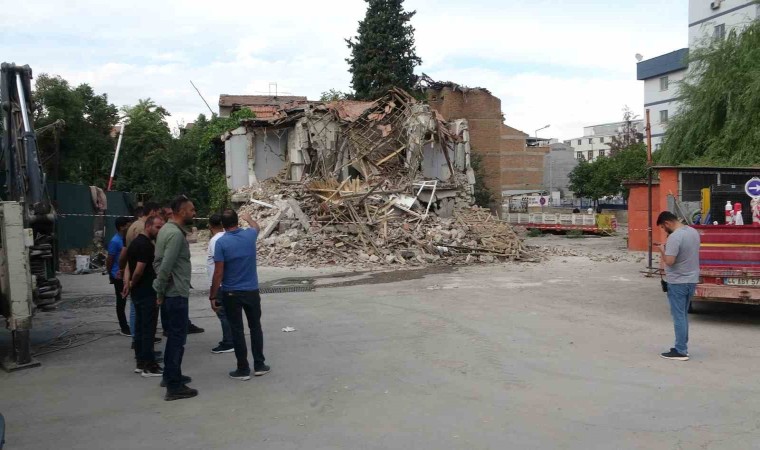 Görgü tanıkları göçük ile birlikte çevreyi toz bulutlarının sardığını belirtirken, bölgeye güvenlik şeridi çekildi.
