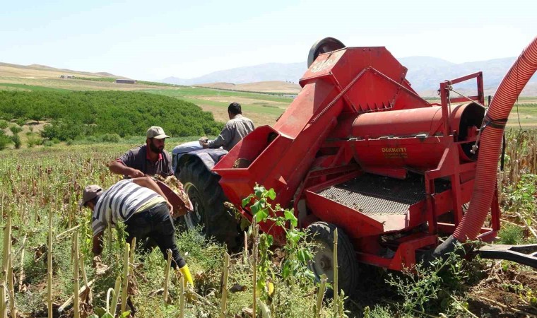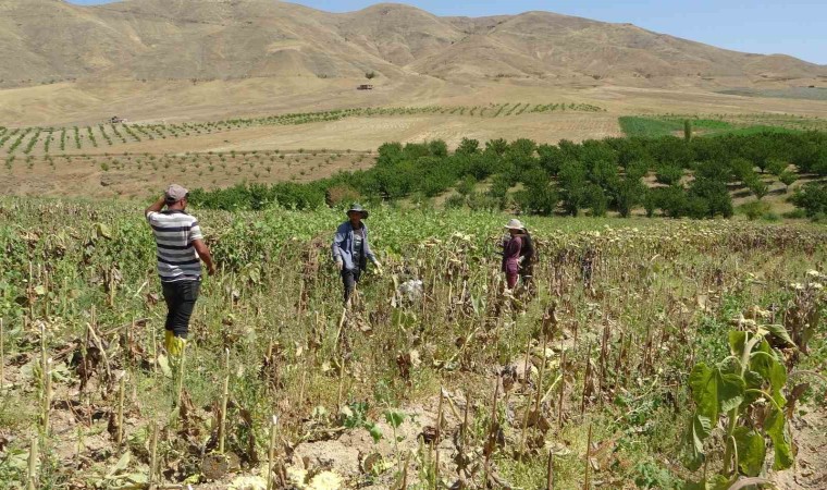 Malatya’nın Kale ilçesinde çerezlik ay çekirdeği ekimi yapılan bölgelerde hasada başlandı.