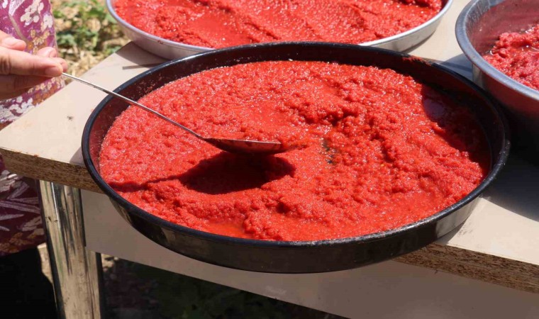 Kırmızı biber ve domatesleri karıştırarak yaptıkları salçayı güneşte beklettikleri ifade eden İde, imkanı olması halinde ev ekonomisine katkı için de salça yapıp satmak istediğini söyledi. Depremde evini kaybettiğini ve aileden kalan bir bahçede ev yaptıklarını anlatan Canan Özen İde, bu şekilde yaşam mücadelesi verdiklerini de dile getirdi.
