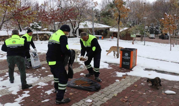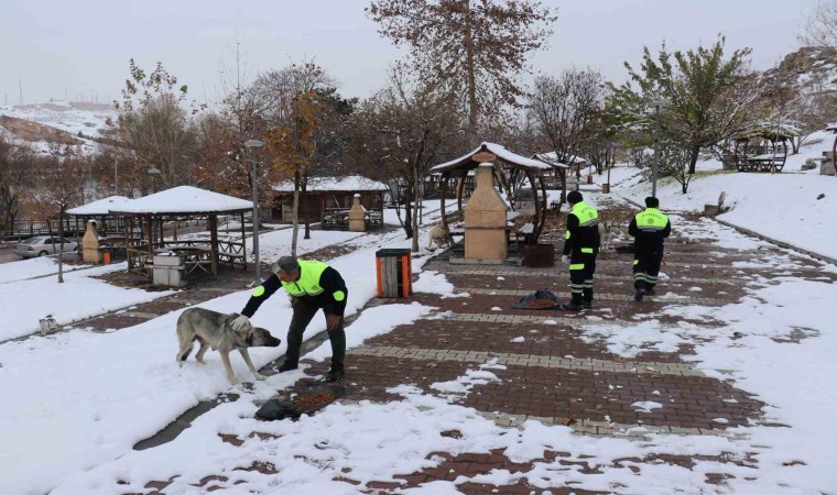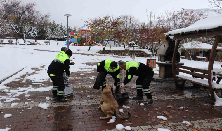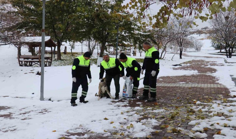 Malatya’da zorlu kış şartlarında yiyecek bulmakta zorlanan sokak hayvanları için kentin belli noktalarına yem bırakıldı.