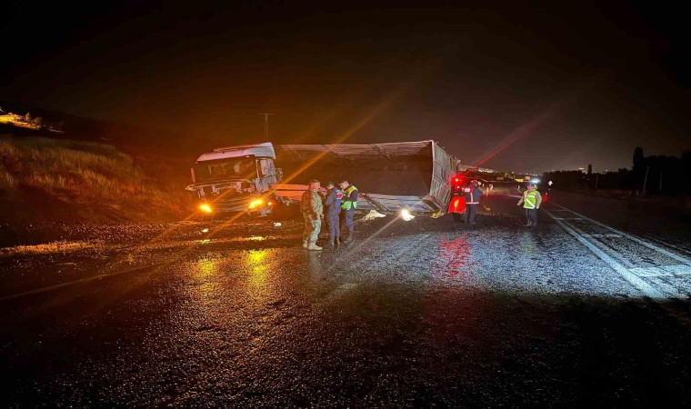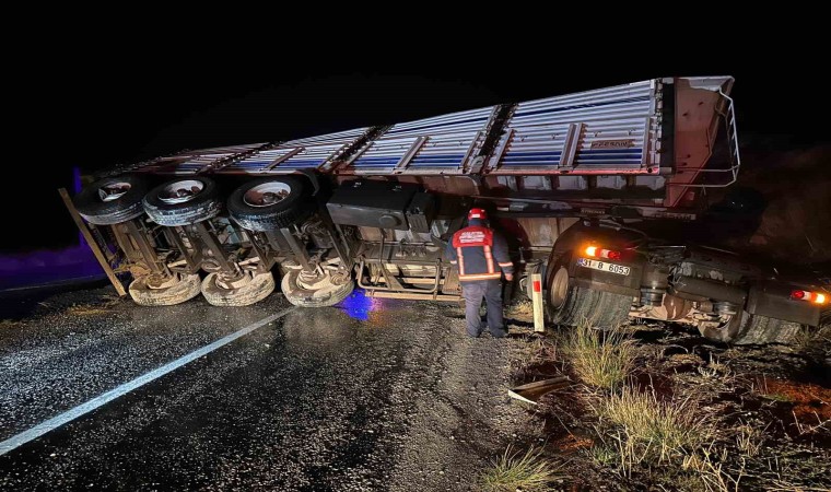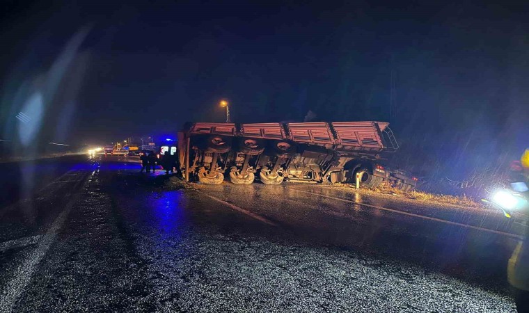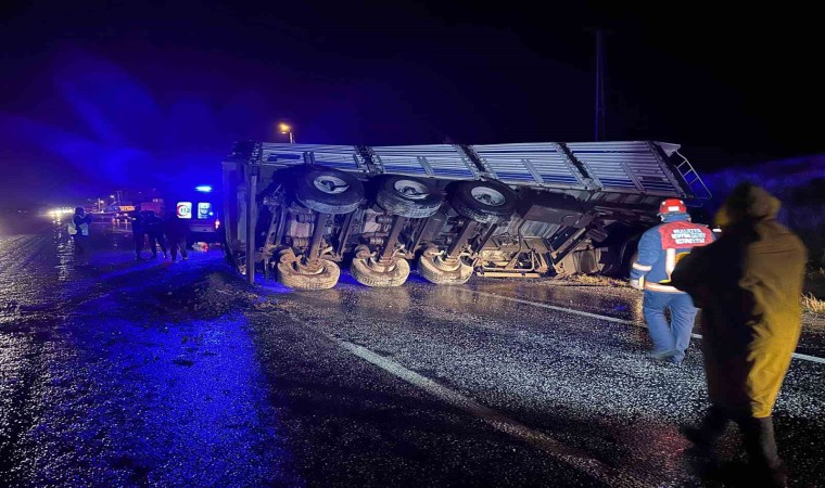 Edilen bilgiye göre, Adıyaman istikametinden Malatya istikametine giden Recep Tayyip K. idaresindeki 31 B 6053 plakalı maden yüklü tır, Savaklı köyü girişinde yağmur sonrası kayganlaşan yolda direksiyon hakimiyetinin kaybedilmesi sonucu kontrolden çıkarak karşı şeride geçti. Devrilen tırın sürücüsü yaralandı.