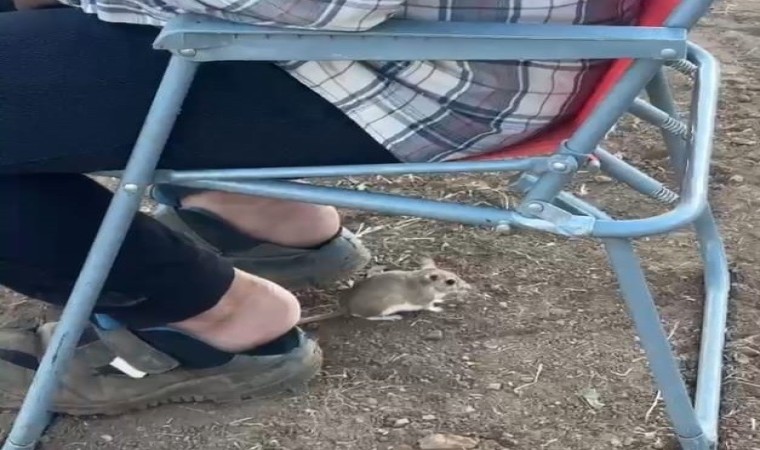 Nesli tükenme tehlikesinde olan ve çok nadir görüntülenen fare ile kanguruya da benzetilen Arap Tavşanı doğa severlerin kamp alanına gelerek burada bir süre kampçılarla vakit geçirdi.