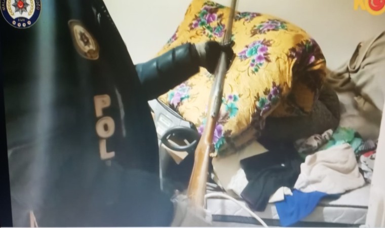 İki ayrı adrese düzenlenen operasyonda 1 adet tabanca, 1 adet tüfek, 13 adet tabanca fişeği, silah namlusu açmak için kullanılan matkap, motor ve silah parçaları, 112 adet sentetik hap ele geçirildi.