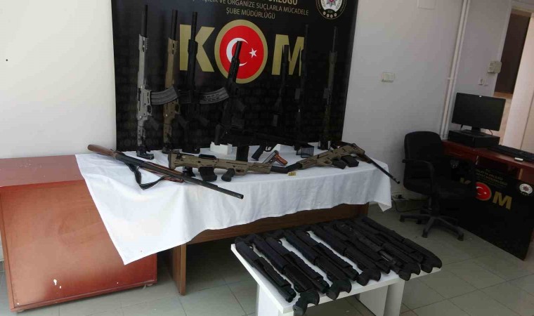 Operasyonda, kent dışından kargo ile gönderilen 13’ü otomatik 23 tüfek ile 1 adet tabanca, 620 bin gümrük kaçağı makaron, 60 bin dal doldurulmuş gümrük kaçağı makaron, 2 sigara dolum makinesi, 2 adet kompresör, 40 kilo bandrolsüz tütün ele geçirilirken, 5 zanlı ise gözaltına alındı.
