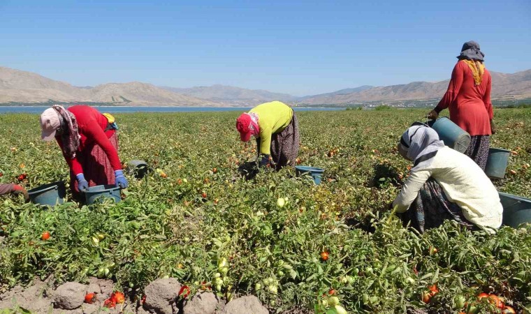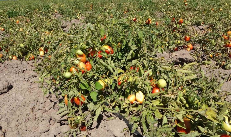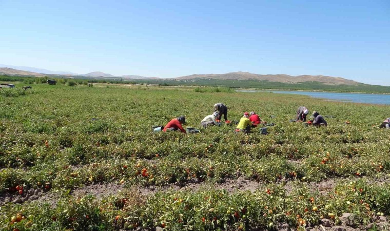 Malatya’nın Kale ilçesinde suların çekildiği Karakaya Baraj Gölü’nde tarımsal üretim yapılıyor. Onlarca dekarlık alanda ekimi yapılan domateslerde ise hasat sürüyor.