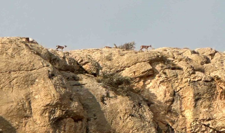 Türkiye’de nesli tükenme tehlikesi altında olduğu için koruma altında olan yaban keçileri, Malatya’nın zirvesi Beydağı’nda sürü halinde görüntülendi. Yaban keçileri, bölgede doğa yürüyüşü yapan vatandaşların cep telefonu kamerasına yansıdı.