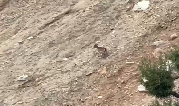 Türkiye’de nesli tükenme tehlikesi altında olduğu için korumaya alınan yaban keçileri, Malatya’nın Pütürge ilçesindeki dağlık alanda sürü halinde görüntülendi.