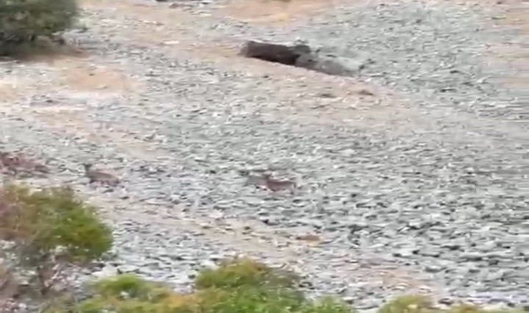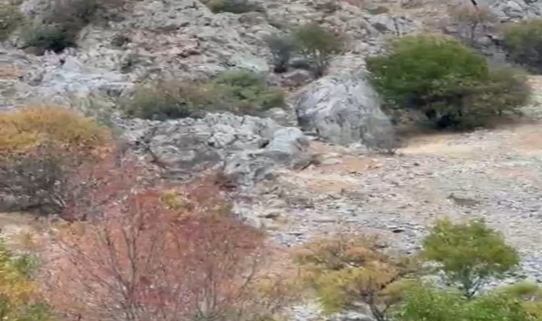Tepehan mevkiinde doğa yürüyüşü yapan vatandaşların cep telefonu kamerasına yansıyan çok sayıda yaban keçisinin dağların kayalık ve yüksek kesimlerine doğru kaçarak bölgeden uzaklaştığı görülüyor.